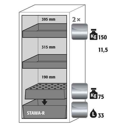 Armoire S-CLASSIC90 - Bac et étagère rétention - 1298x596mm - Asecos