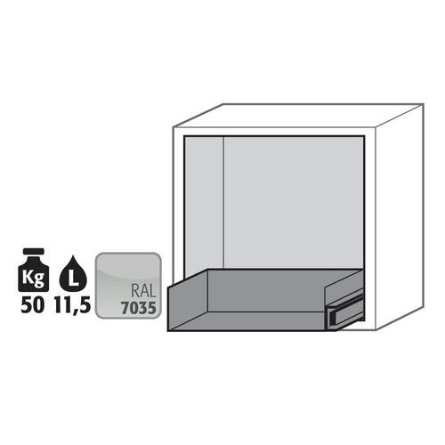 Stockage sécurisé, conforme à la réglementation en vigueur des produits dangereux, inflammables dans les zones de travail Fonction / Construction : Robuste et durable : stucture extérieure en acier revêtu époxy Confort de travail : immobilisation des tiroirs dans toutes les positions, accès vertical à tous les récipients, fermeture automatique en cas d'incendie Sûr : tiroir avec câble de mise à la terre, borne, bac étanche soudé, tiroir à fermeture automatique en cas d'incendie Utilisation controlée : tiroir verrouillable avec serrure intégrée, et indicateur de verrouillage des portes (rouge/vert) Mobile : socle avec roulettes en option, pour un déplacement facile de l'armoire Aération et ventilation : système d'aération et de ventilation intégrés pour le raccordement (NW 50) à un dispositif technique d'évacuation d'air