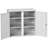 Version adaptée des armoires à portes Fermeture par crémone 3 points Tablettes galvanisées, charge 60 Kg Fabriqué au RU Charge maxi par tablette (kg) : 75 Charge maxi (kg) : 1000