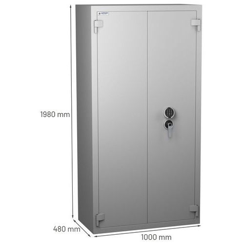 | Intitulé du produit | Armoire forte antifeu, Hauteur hors tout: 1980 mm, Largeur hors tout: 1000 mm, Type de fermeture: À code |