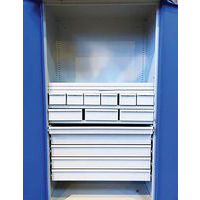 | Intitulé du produit | Armoire haute SF1 avec tiroirs, Charge maxi: 450 kg, Matériau: Acier, Hauteur hors tout: 1950 mm |