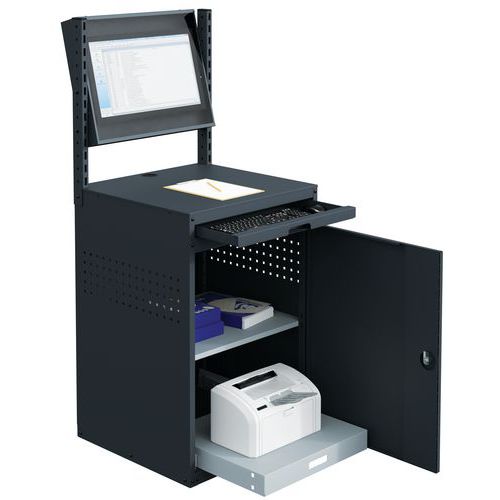 | Intitulé du produit | Armoire informatique fermée avec plateau Modulinfo, Charge maxi: 450 kg, Matériau: Acier |