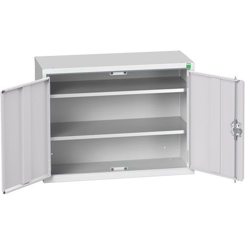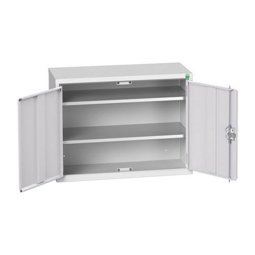 Rangez vos affaires dans cette armoire murale solide. Installation au mur aisée à l'aide d'œillets. Se ferme au moyen d'une serrure. Fabriqué au RU Charge maxi par tablette (kg) : 35 kg