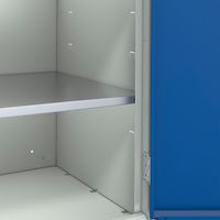 Rangez vos affaires dans cette armoire murale solide. Installation au mur aisée à l'aide d'œillets. Se ferme au moyen d'une serrure. Fabriqué au RU Charge maxi par tablette (kg) : 35 kg