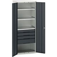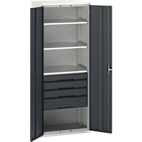 Armoire Verso - Hauteur 2000mm, Largeur 800mm, 3 tablettes, 4 tiroirs, Coloris Anthracite - Bott Armoire Verso - Hauteur 2000mm, Largeur 800mm, 3 tablettes, 4 tiroirs, Coloris Anthracite - Bott