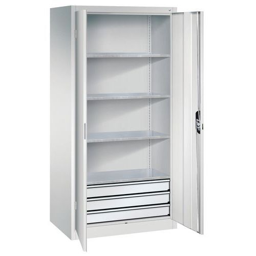 Armoire porte battantes à tiroirs grande largeur, Charge maxi: 450 kg, Hauteur hors tout: 1950 mm