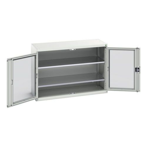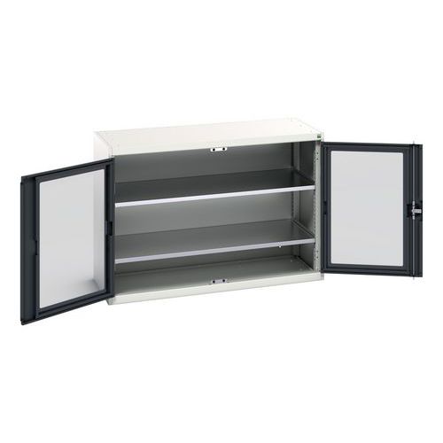 Armoire Verso Portes Transparentes Avec 2 Tablettes 1300x550x900 Fabriqué au RU Charge maxi (kg) : 1000 Charge maxi par tablette (kg) : 75