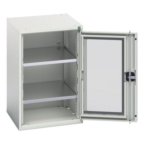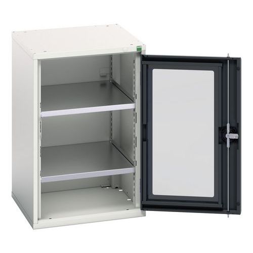 Armoire Verso Portes Transparentes Avec 2 Tablettes 525x550x800. Contient un jeu de 2 clés. Fabriqué au RU Charge maxi (kg) : 1000 Charge maxi par tablette (kg) : 75