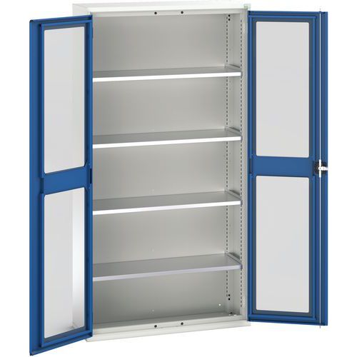 Armoire Verso Portes Transparentes Avec 4 Tablettes 1050x350x2000 Fabriqué au RU Charge maxi (kg) : 1000 Charge maxi par tablette (kg) : 75