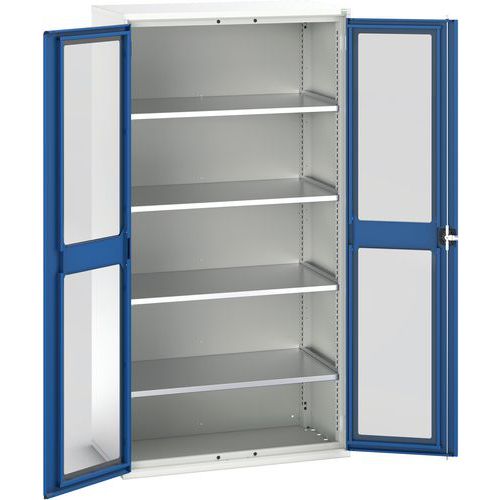 Armoire Verso Portes Transparentes Avec 4 Tablettes 1050x550x2000 Fabriqué au RU Charge maxi par tablette (kg) : 75 Charge maxi (kg) : 1000