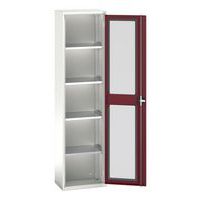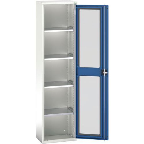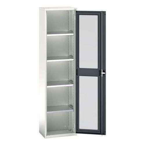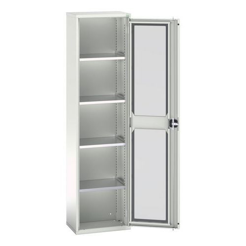 Armoire Verso portes transparentes avec 4 tablettes réglables permettant de personnaliser l'espace de rangement. Visibilité optimale du contenu, facilitant la recherche et l'organisation des articles. Cadre de la porte est en acier et la fenêtre est en Perspex. Fabriqué au RU Charge maxi (kg) : 1000 Charge maxi par tablette (kg) : 75