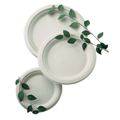 Assiettes plates fibre_Matfer, Coloris: Beige, Matériau: Fibre de canne à sucre, Ø: 230 mm, Forme: Ronde