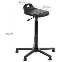 Travaillez confortablement sur cet assis-debout. Bonne stabilité grâce à l’assise ergonomique. Réglez facilement la hauteur d’assise. Résiste notamment aux acides, aux courants basse tension et aux étincelles.