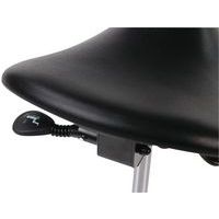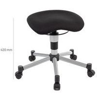 Effectuez votre travail dans une position confortable grâce à ce tabouret avec assise en forme de selle. Adoptez une posture stable grâce à l’assise ergonomique en forme de selle. Réglez facilement en hauteur l’assise en matériau souple.