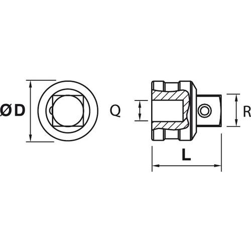 | Intitulé du produit | Augmentateur carré 1/4'' à 3/8'', Réf. Fabricant: 9290380001, Modèle: Adaptateur, Longueur: 25 mm |