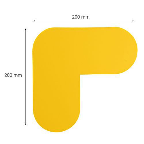 Autocollant marquage au sol en forme de L. Couche supérieure en PVC pour résister à une forte fréquentation. Avec couche de colle puissante et revêtement antidérapant.