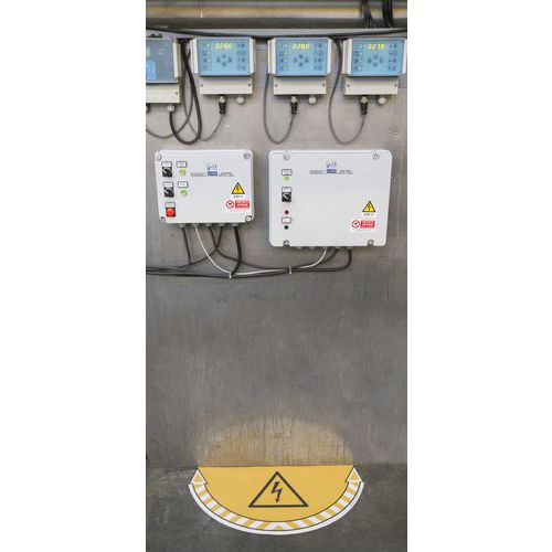 | Intitulé du produit | Autocollant pour sol, Matériau: PVC, Largeur: 700 mm, Coloris: Jaune, Panneau forme: Demi-cercle |