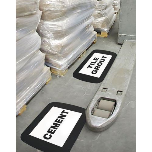 - Autocollant rectangulaire A4 Frames 4 Floors permettant de fixer un message au sol.
