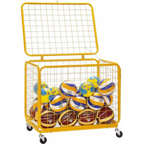 | Intitulé du produit | Bac à ballons métallique sur roulettes, Matériau: Acier, Hauteur: 90 cm, Largeur: 75 cm, Longueurs: 100 cm |