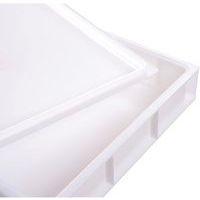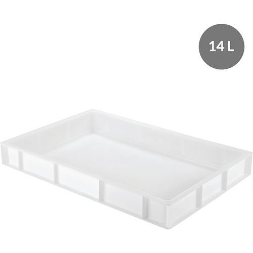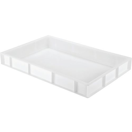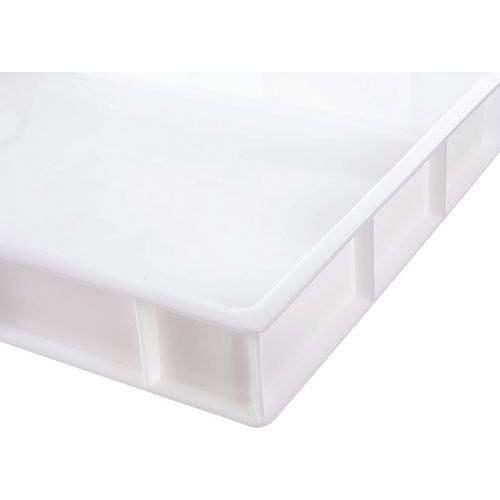 Caisse pleine 600x400. Pour les traiteurs, restaurateurs : caisse de stockage des matières premières. Empilable avec et sans couvercle, grande capacité d'empilement en hauteur. Fond plat sans zone de rétention, nettoyage facile.