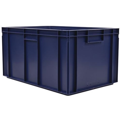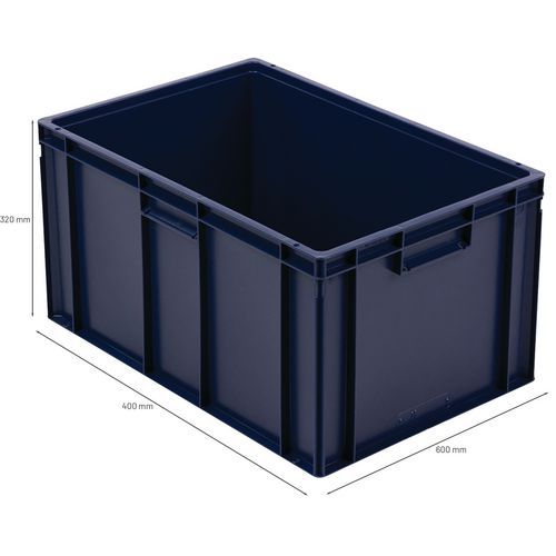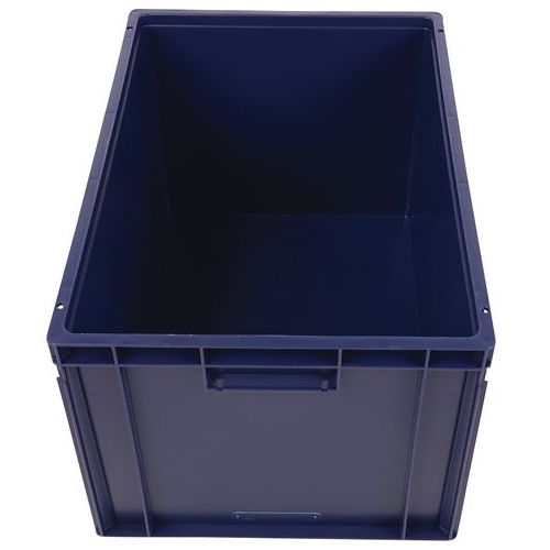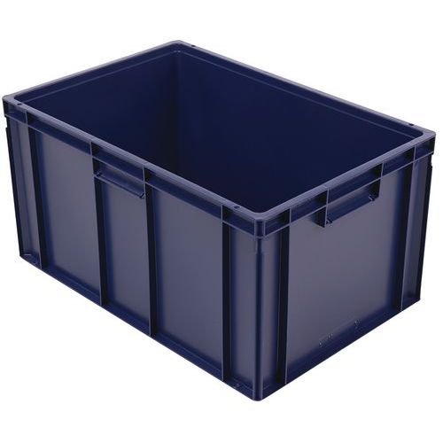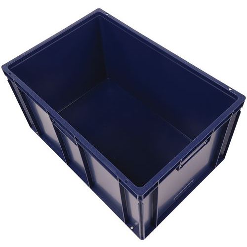 Bac norme Europe de grande stabilité au gerbage. Poignées fermées : manutention aisée, capacité préservée. Résistance aux huiles, graisses et nombreux produits chimiques.