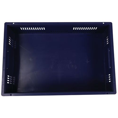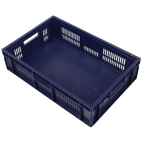 Bac norme Europe bleu à grande stabilité au gerbage. Large ventilation garantie avec les parois ajourées. Manipulation aisée grâce à ses larges poignées ouvertes. Résistance aux huiles, graisses et nombreux produits chimiques.