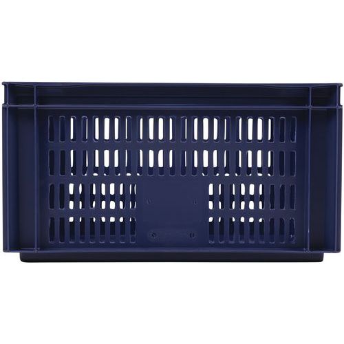 Bac norme Europe bleu à grande stabilité au gerbage. Large ventilation garantie avec les parois ajourées. Manipulation aisée grâce à ses larges poignées ouvertes. Résistance aux huiles, graisses et nombreux produits chimiques.