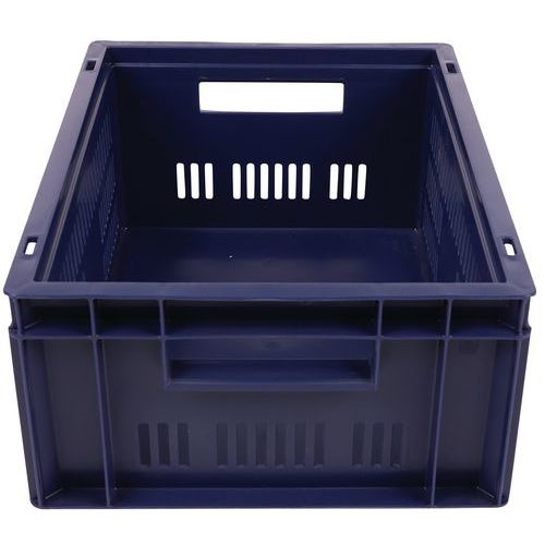 Bac norme Europe bleu à grande stabilité au gerbage. Large ventilation garantie avec les parois ajourées. Manipulation aisée grâce à ses larges poignées ouvertes. Résistance aux huiles, graisses et nombreux produits chimiques.