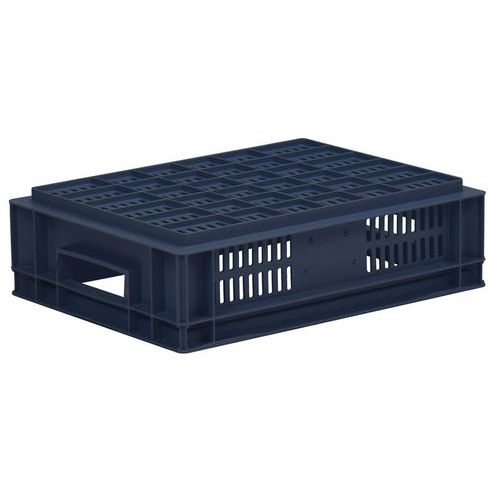 Bac norme Europe bleu à grande stabilité au gerbage. Large ventilation garantie avec les parois ajourées. Manipulation aisée grâce à ses larges poignées ouvertes. Résistance aux huiles, graisses et nombreux produits chimiques.