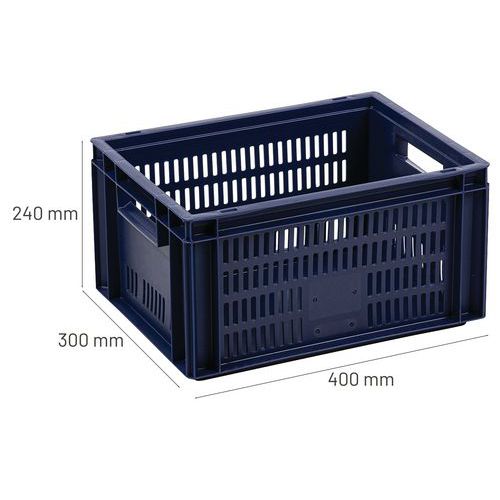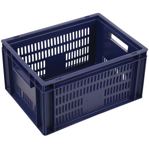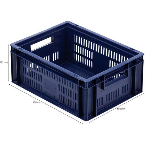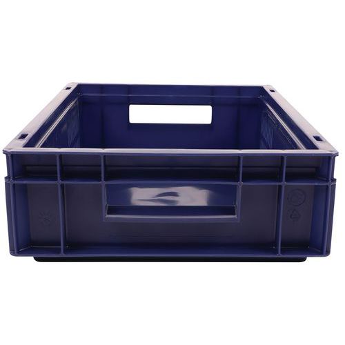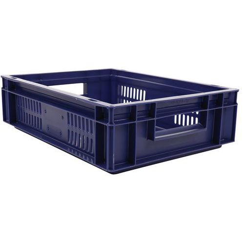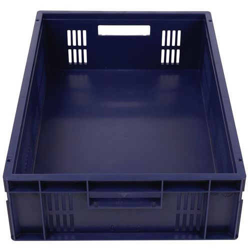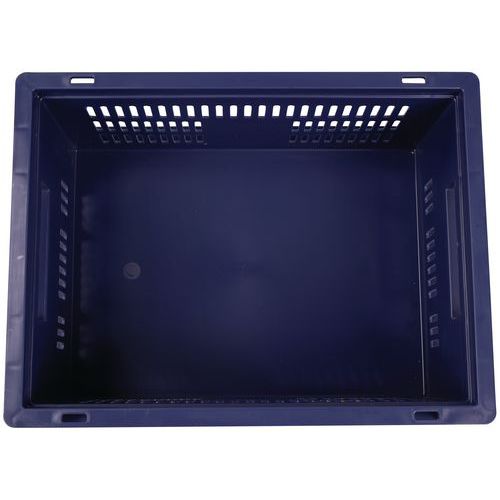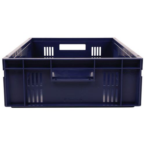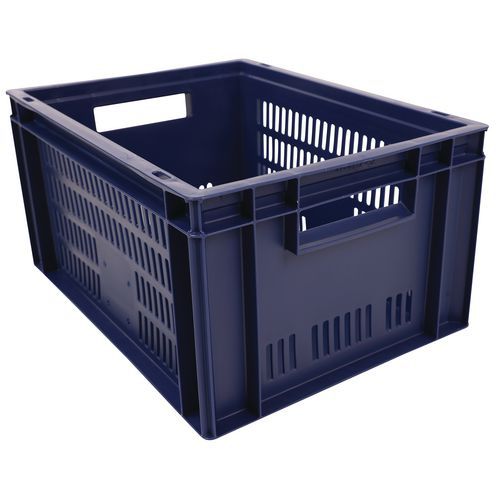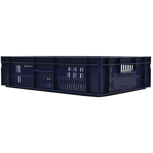 Bac norme Europe bleu à grande stabilité au gerbage. Large ventilation garantie avec les parois ajourées. Manipulation aisée grâce à ses larges poignées ouvertes. Résistance aux huiles, graisses et nombreux produits chimiques.