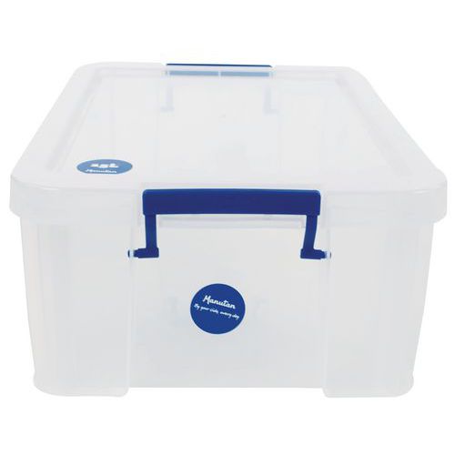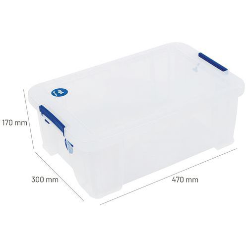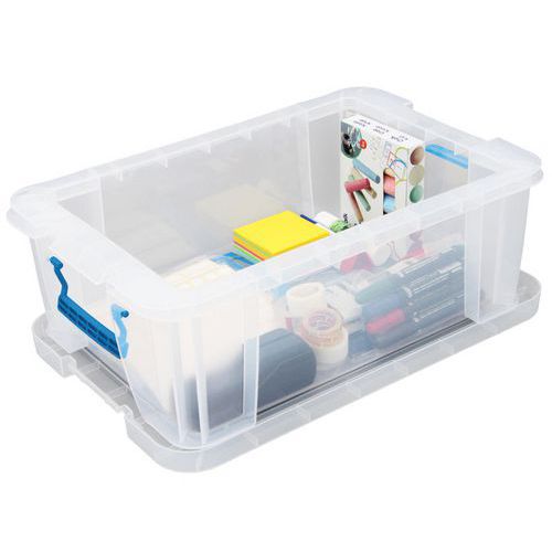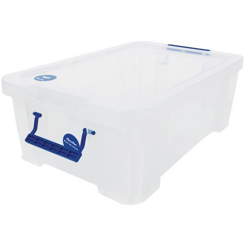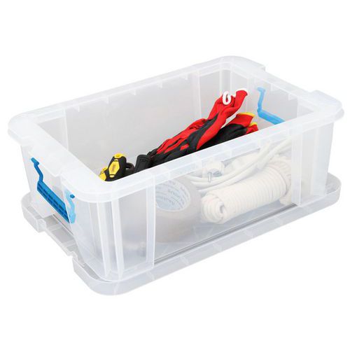 Bac de rangement solide et très stable. Pratique, le transport est facile grâce aux poignées. Reconnaissance rapide des objets à l'intérieur du bac grâce à a sa transparence.