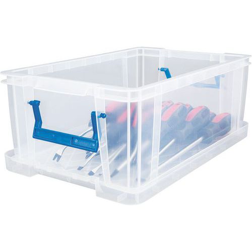 Bac de rangement solide et très stable. Pratique, le transport est facile grâce aux poignées. Reconnaissance rapide des objets à l'intérieur du bac grâce à a sa transparence.