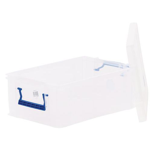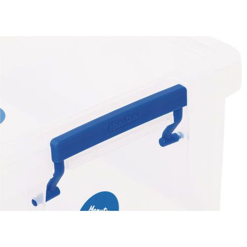 Bac de rangement solide et très stable. Pratique, le transport est facile grâce aux poignées. Reconnaissance rapide des objets à l'intérieur du bac grâce à a sa transparence.