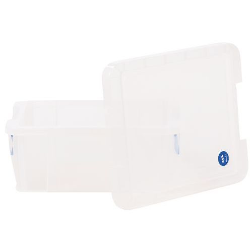 Bac de rangement solide et très stable. Pratique, le transport est facile grâce aux poignées. Reconnaissance rapide des objets à l'intérieur du bac grâce à a sa transparence.