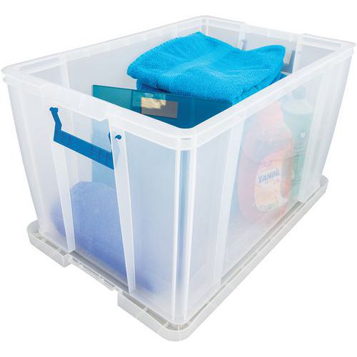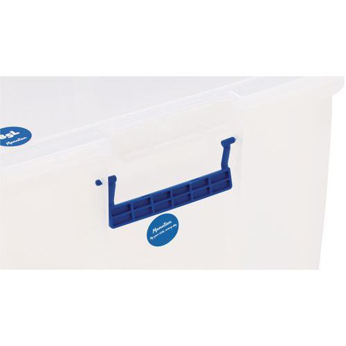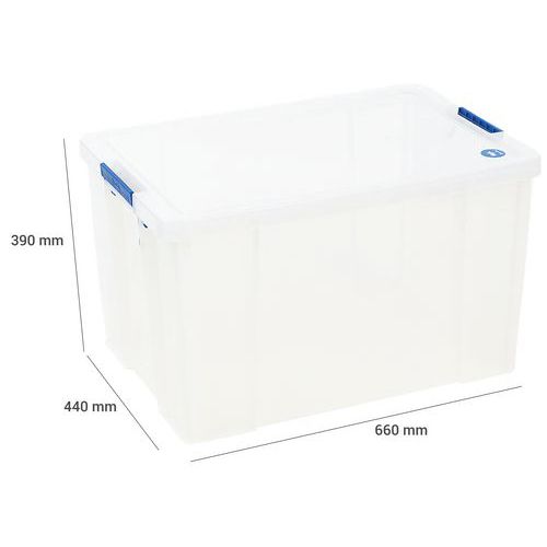 Bac de rangement solide et très stable. Pratique, le transport est facile grâce aux poignées. Reconnaissance rapide des objets à l'intérieur du bac grâce à a sa transparence.