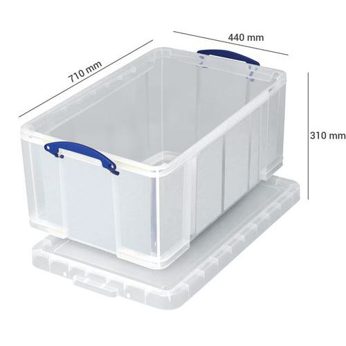Identification rapide du contenu grâce à sa structure translucide. Entièrement renforcé pour une meilleure résistance à la charge et à l’écrasement. Gerbable avec ou sans couvercle entre bacs de même dimension. Protection du contenu contre la poussière et l’humidité. Transport facilité par les larges poignées. Zones pour étiquettes autocollantes. Fabriqué au RU Charge maxi (kg) : 100 kg Garantie client : 3 ans