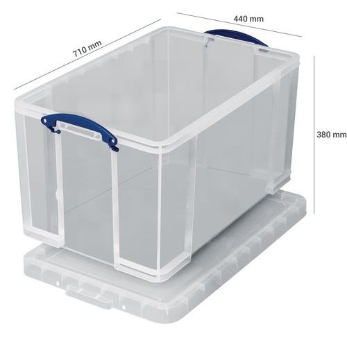 Identification rapide du contenu grâce à sa structure translucide. Entièrement renforcé pour une meilleure résistance à la charge et à l’écrasement. Gerbable avec ou sans couvercle entre bacs de même dimension. Protection du contenu contre la poussière et l’humidité. Transport facilité par les larges poignées. Zones pour étiquettes autocollantes. Fabriqué au RU Charge maxi (kg) : 100 kg Garantie client : 3 ans