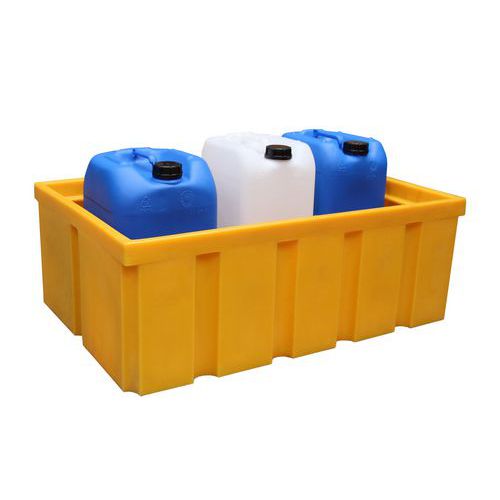 | Intitulé du produit | Bac de rétention, Caillebotis: non, Capacité de rétention: 200 L, Coloris: Jaune, Capacité (nb de fûts): 5 |
