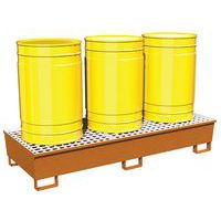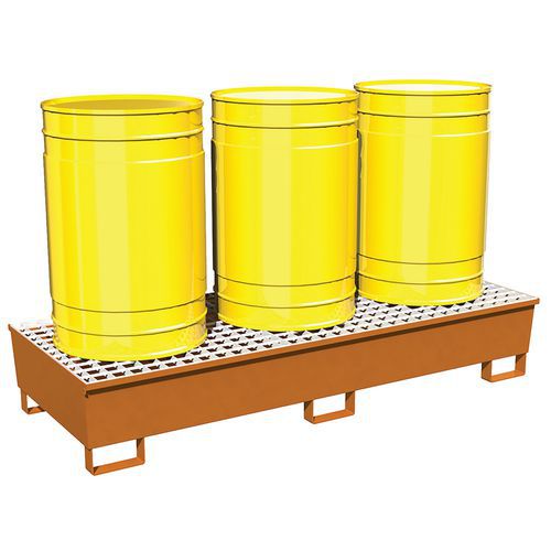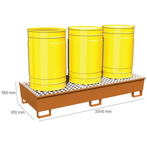 | Intitulé du produit | Bac de rétention 3 fûts en acier, Capacité (nb de fûts): 3, Caillebotis: oui, Capacité de rétention: 600 L |