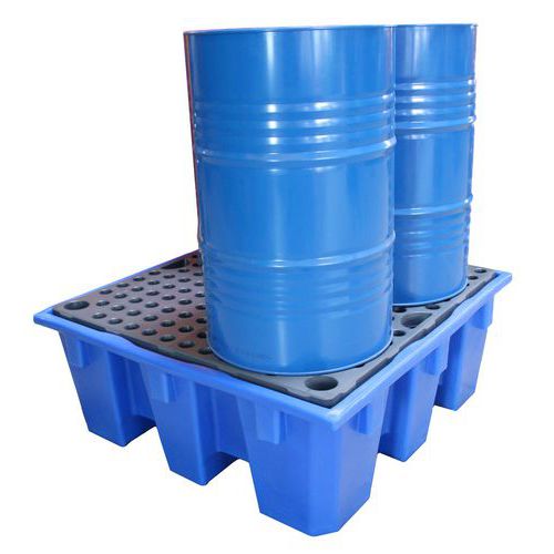 | Intitulé du produit | Bac de rétention DIBT 4 fûts avec caillebotis, Caillebotis: oui, Capacité de rétention: 450 L, Coloris: Bleu |
