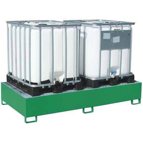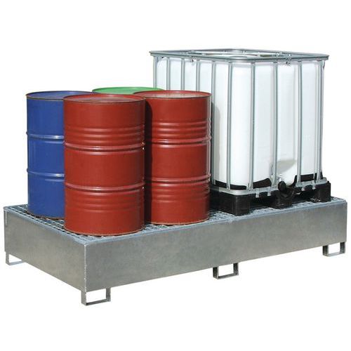 Manutention à vide possible. Bac de rétention avec caillebotis en acier galvanisé à chaud.