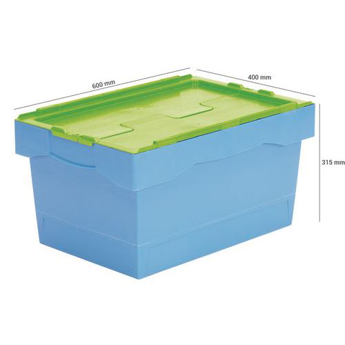 Identification flux logistiques facilitée par le coloris des couvercles. Polyvalent, adapté aux manutentions manuelles et automatisées. Sécurisation du contenu via un couvercle plombable et scellable. Bac gerbable et emboîtable à vide pour un gain de place optimal. Fabriqué en France Charge maxi (kg) : 25 kg