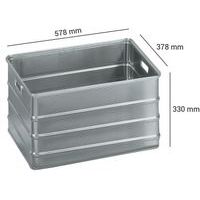 | Intitulé du produit | Bac de transport aluminium, Capacité: 55 L, Hauteur hors tout: 330 mm, Largeur hors tout: 378 mm |