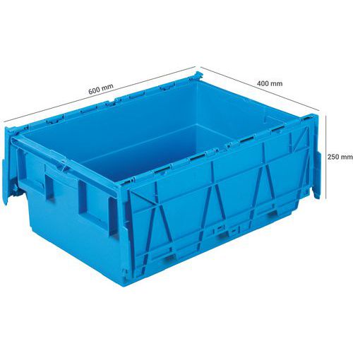 Bac de transport Integra® empilable et emboîtable à 65 % pour gain de place.