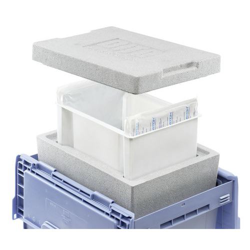 Composition : - 1 box Neopor® avec couvercle - 1 insert en PS lavable - 3 accumulateurs de froid par insert Icecatch® Solid Isolated
