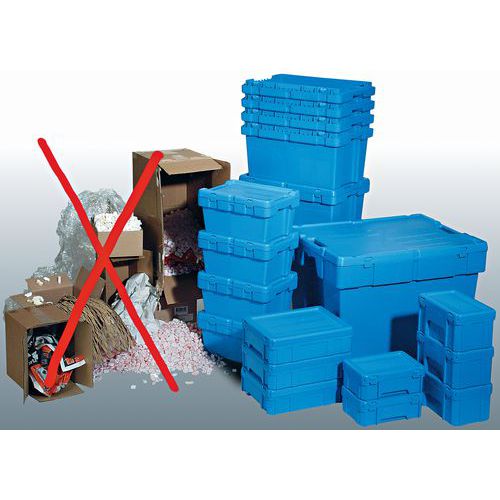 Les bacs Poolbox sont des bacs emboîtables et gerbables sur couvercle particulièrement adaptés aux expeditions de colis car ils disposent d'un système de fermeture fiable (ni ficelle ni colle ne sont nécessaires).