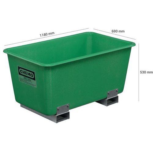 | Intitulé du produit | Bac emboîtable avec guide-fourche, Capacité: 300 L, Hauteur hors tout: 530 mm, Largeur hors tout: 690 mm |