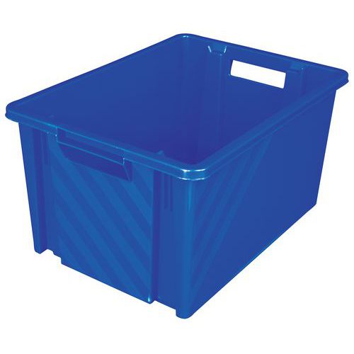 Bac emboîtable et gerbable équipé de poignées ouvertes facilitant la manutention.