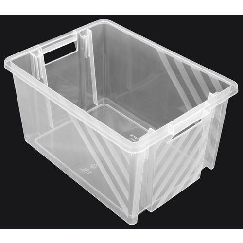 Bac emboîtable et gerbable équipé de poignées ouvertes facilitant la manutention.