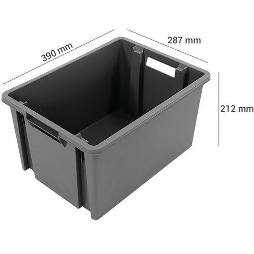 Bac emboîtable et gerbable NovaBacs, Capacité: 18 L, Hauteur hors tout: 212 mm, Largeur hors tout: 287 mm